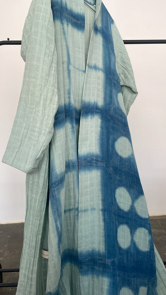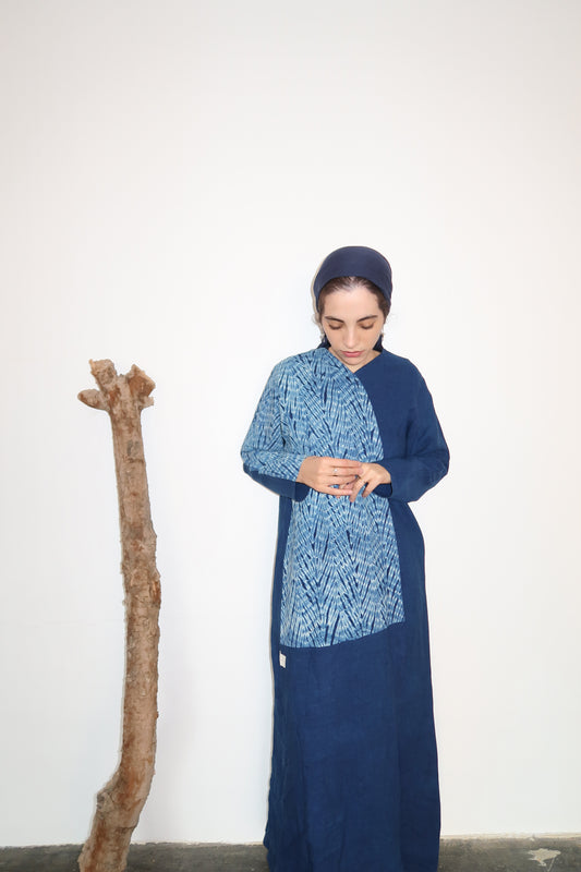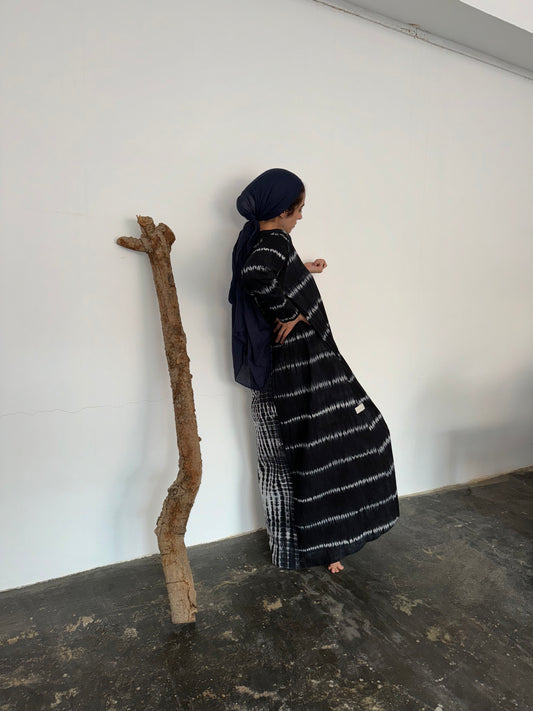 Hand-dyed ebb and flow indigo abaya