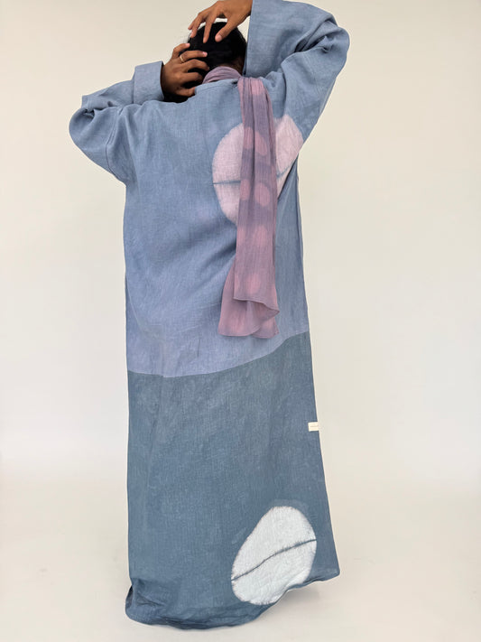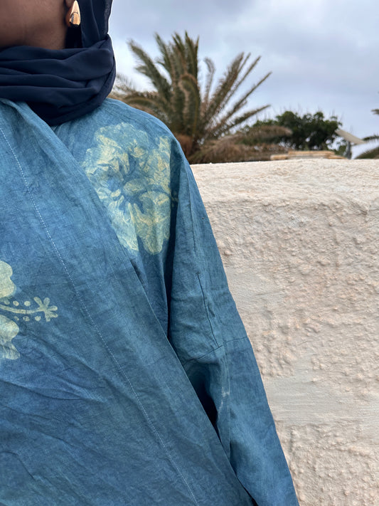 Hand-dyed blue bloc abaya