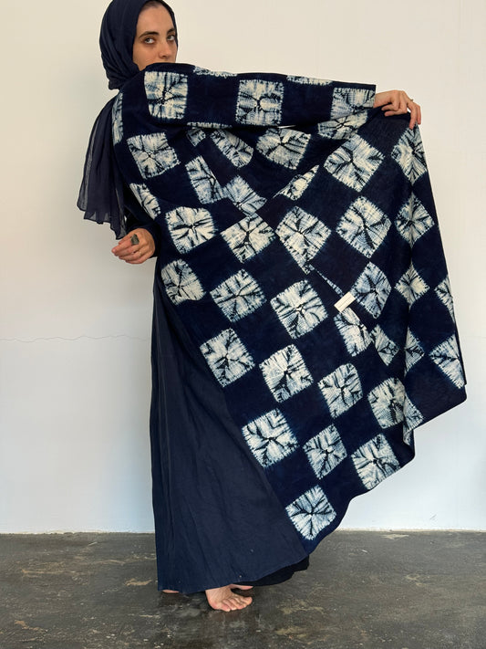 Hand-dyed indigo squares abaya